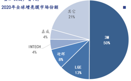 世界主要增亮膜生产企业有:美国的3M公司、日本的三菱人造丝有限公司、韩国的LGE公司、MNtech公司、新和公司、SKC Haas公司、Samsung Cheil公司和中国台湾的友辉光电、嘉威光电、迎辉科技等。