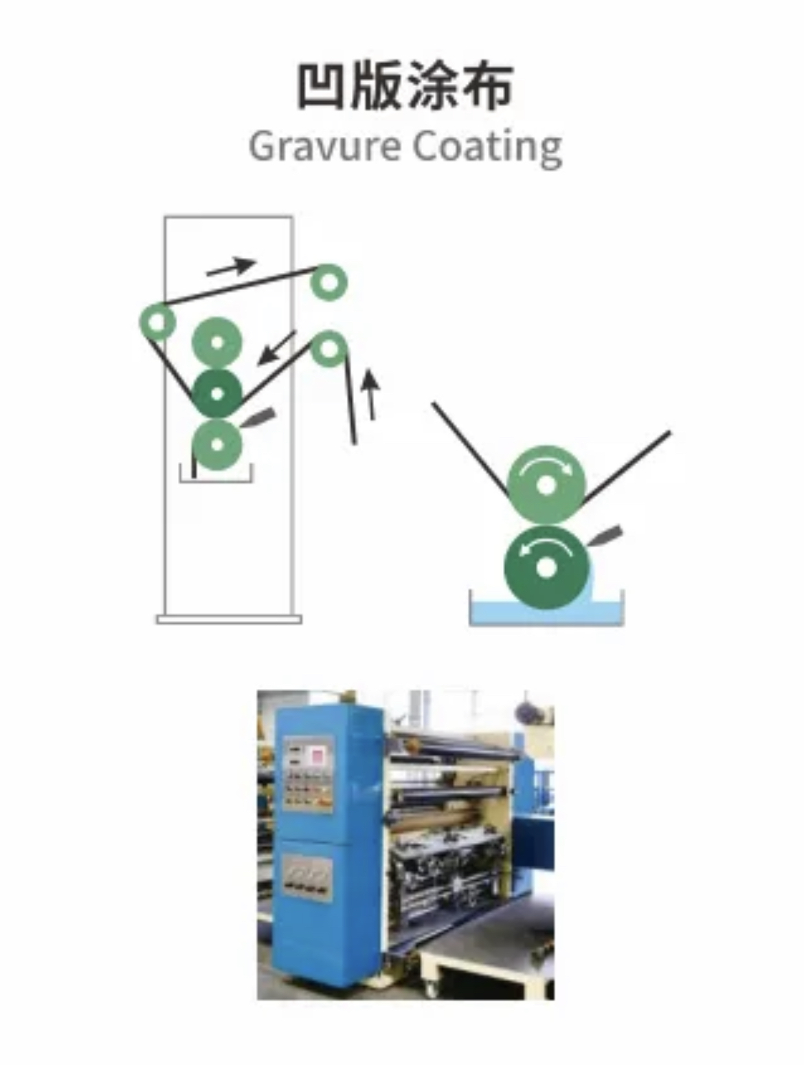 ②凹版涂布工艺:凹版涂布,计量精确、操作简单,涂布表面平整,涂布速度快,涂布厚度(湿胶)10~25μm,胶液粘度为10~2000cps。