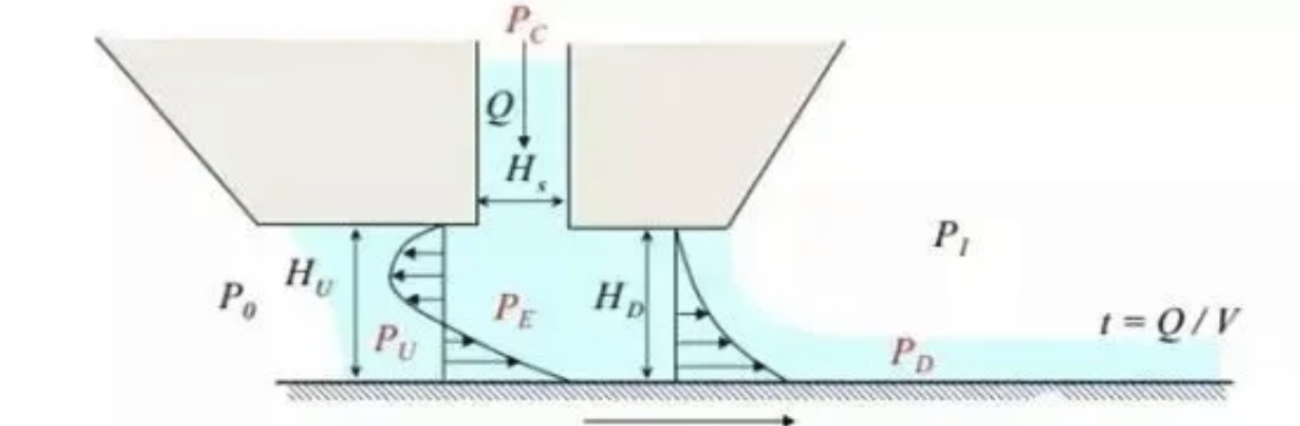 狭缝式挤压涂布原理介绍:狭缝式挤压涂布的流动分布二维示意图如下: